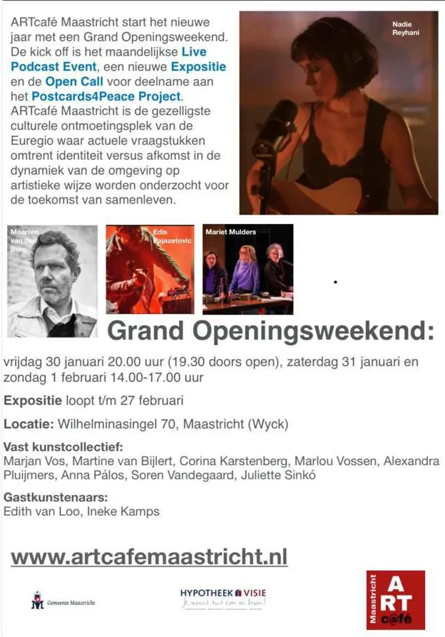 Artcafé Grand openingsweekend 30 januari – 27 februari Wilhelminasingel 70, Maastricht Tumke2026-02-08T10:29:44+00:00 Teilen Sie diese Geschichte, wählen Sie Ihre Plattform! FacebookXLinkedInWhatsAppPinterestEmail